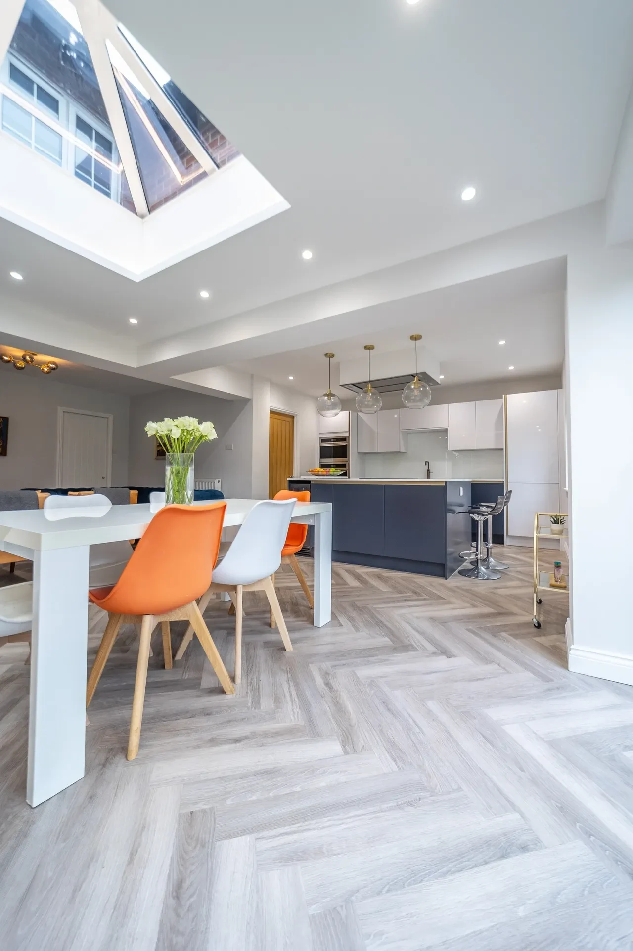 The completed project created a large open-plan kitchen, living and dining space alongside a utility room, master bedroom with ensuite, family bathroom and dedicated work-from-home space.